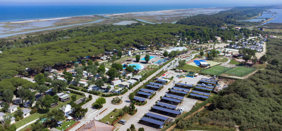 Camping Spina Family Collection ligt in Lido di Spina, aan de Adriatische kust in de provincie Ferrara (Emilia-Romagna), en grenst aan het prachtige Po-deltagebied. Je verblijft hier tussen de pijnbomen en vlak bij water en natuur, waardoor je makkelijk afwisselt tussen strand, relaxen en eropuit gaan. Direct vanaf de camping wandel je via een klein bospad zo naar het strand (ca. 1 km). Voor dagelijkse boodschappen is er een minisupermarkt op de camping en vind je meer winkels en boetiekjes in het dorp Lido di Spina op ongeveer 2 km afstand. Grotere supermarkten en overige voorzieningen zijn te vinden in het nabijgelegen Comacchio (circa 10 km rijden), een charmant lagunestadje dat ook wel het “Kleine Venetië” van de regio wordt genoemd.